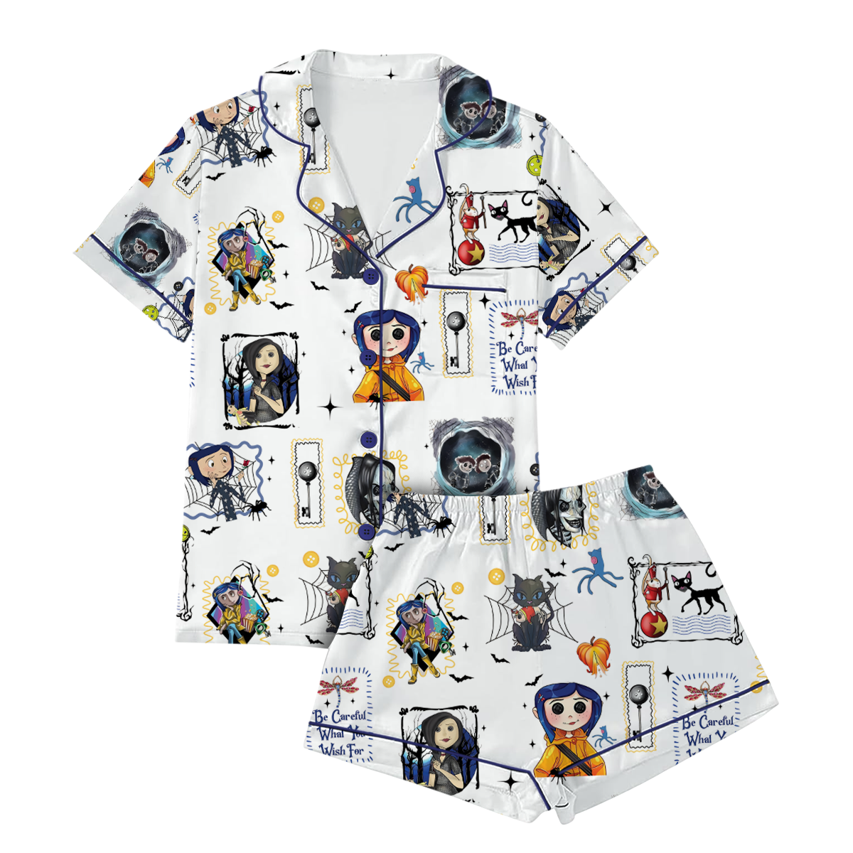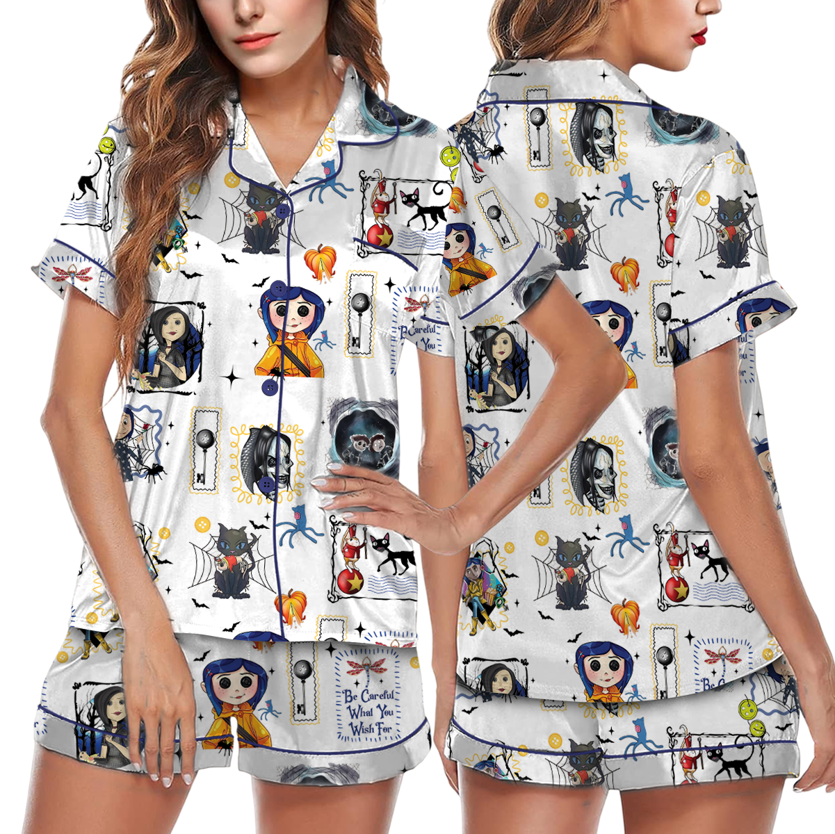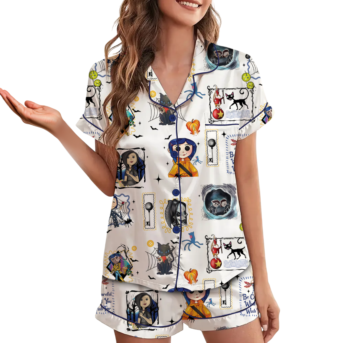 Coraline Best For Coraline Movie Vintage Retro Horror Pajamas Set Short, Coraline Movie Pajamas, Funny Cartoon Shirt