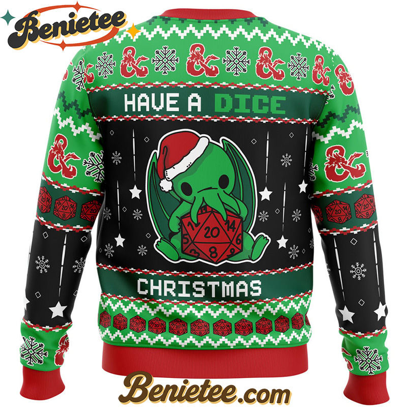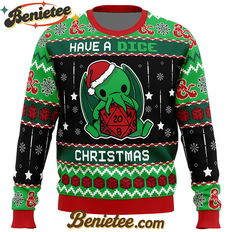 Celebrate the season with the Cthulhu Have A Dice Dungeons & Dragons Ugly Christmas Sweater — a playful, cozy ugly sweater made for joyful holiday moments.