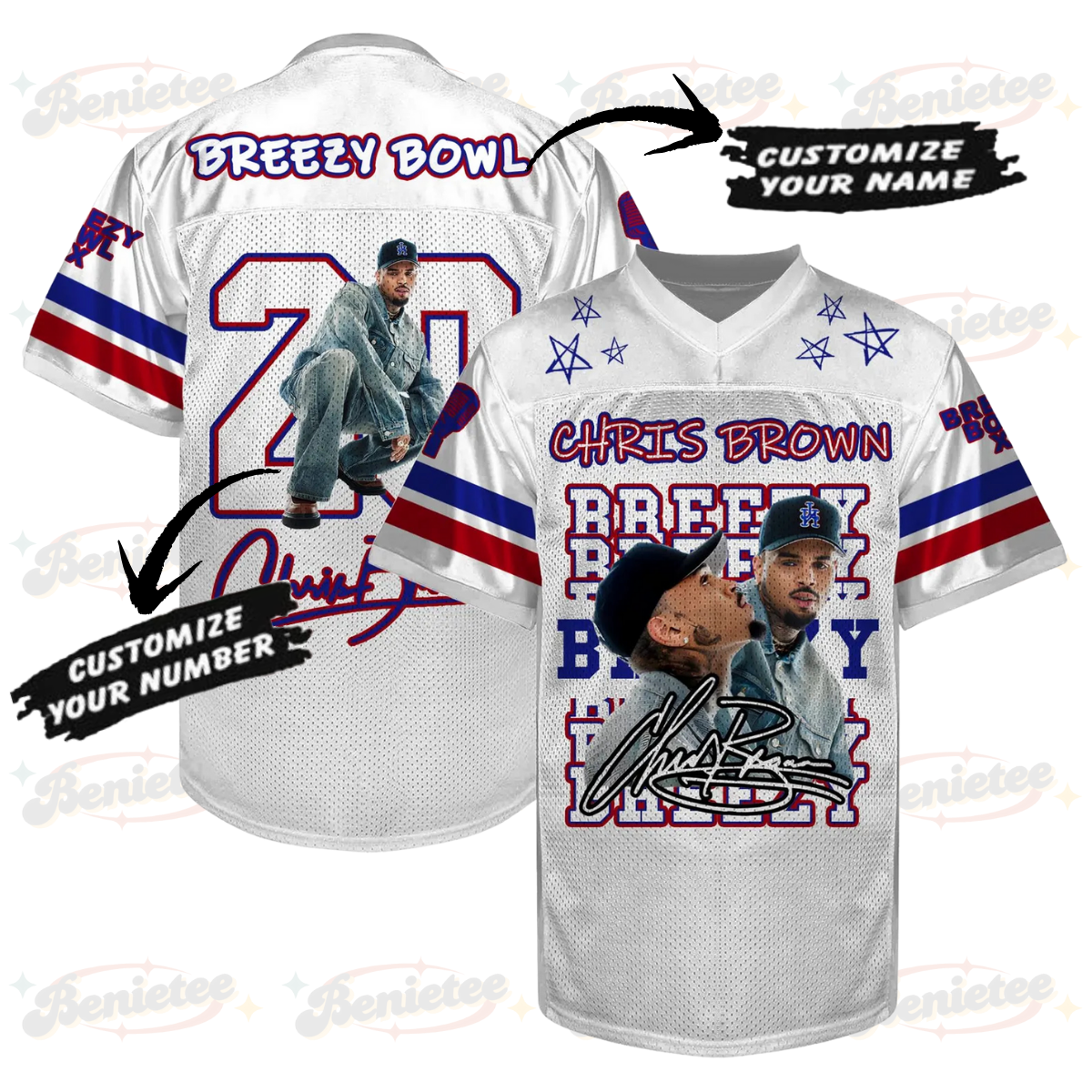 Custom Chris Brown Breezy Bowl Football Jersey, Breezy Bowl XX Music Tour 2025 Football Jersey