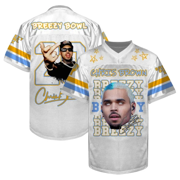 Custom Chris Brown Breezy Bowl Football Jersey, R&B Concert Merch Brown Breezy Bowl XX Tour 2025 Football Jersey