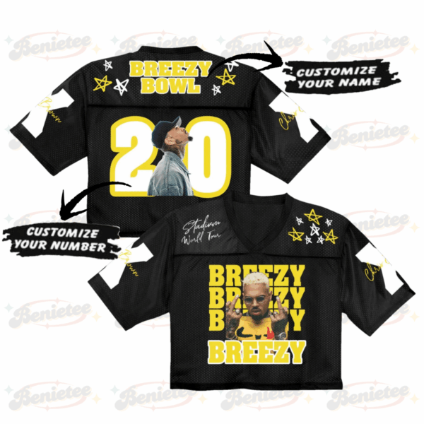 Custom Chris Brown Croptop Mesh Football, Breezy Bowl XX Music Tour 2025 Croptop Mesh Football