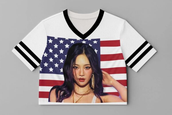 Custom Photo Crop Jersey with USA Flag, Personalized Name Number Mesh Shirt, Kpop Concert Outfit