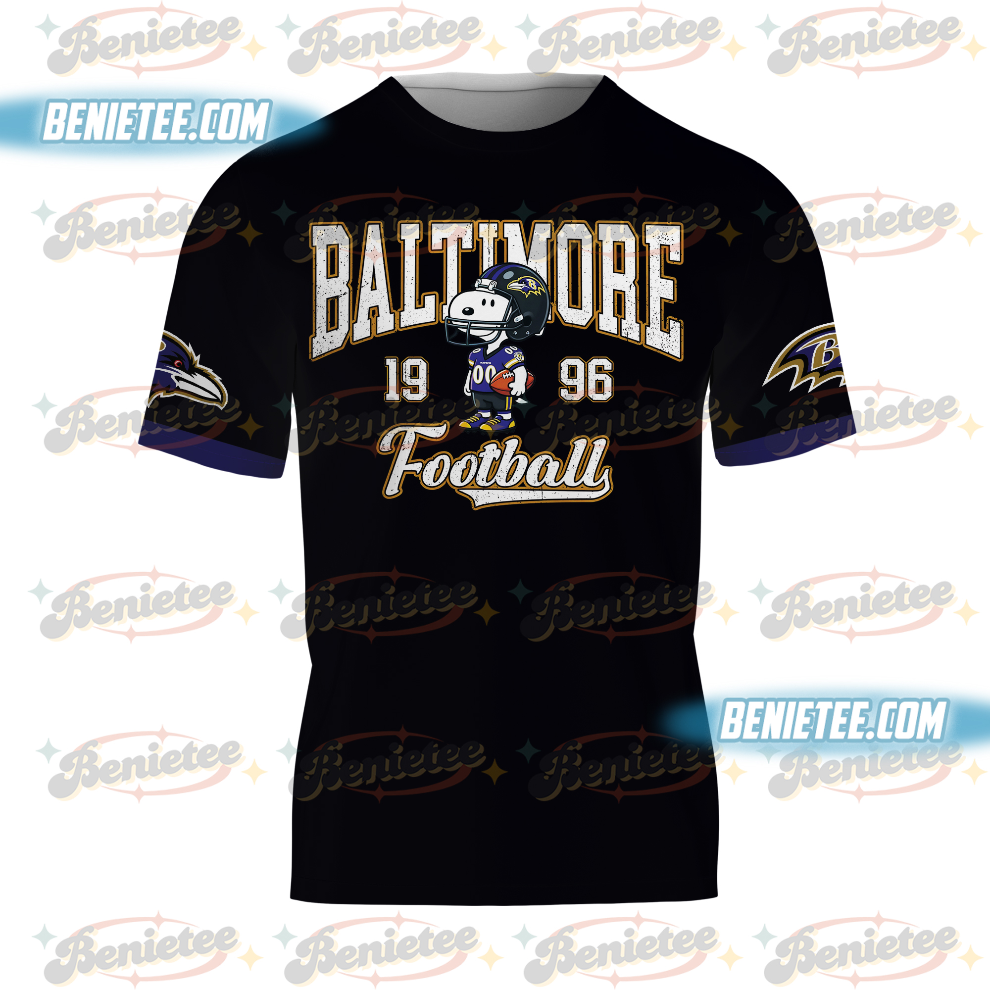 Custom Snoopy Football Helmet 3D T-Shirt for men with all-over rock band graphic print, soft cotton blend fabric, unisex US fit, available in multiple sizes.