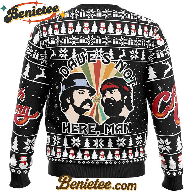 Dave’s Not Here Man Cheech and Chong Ugly Christmas Sweater