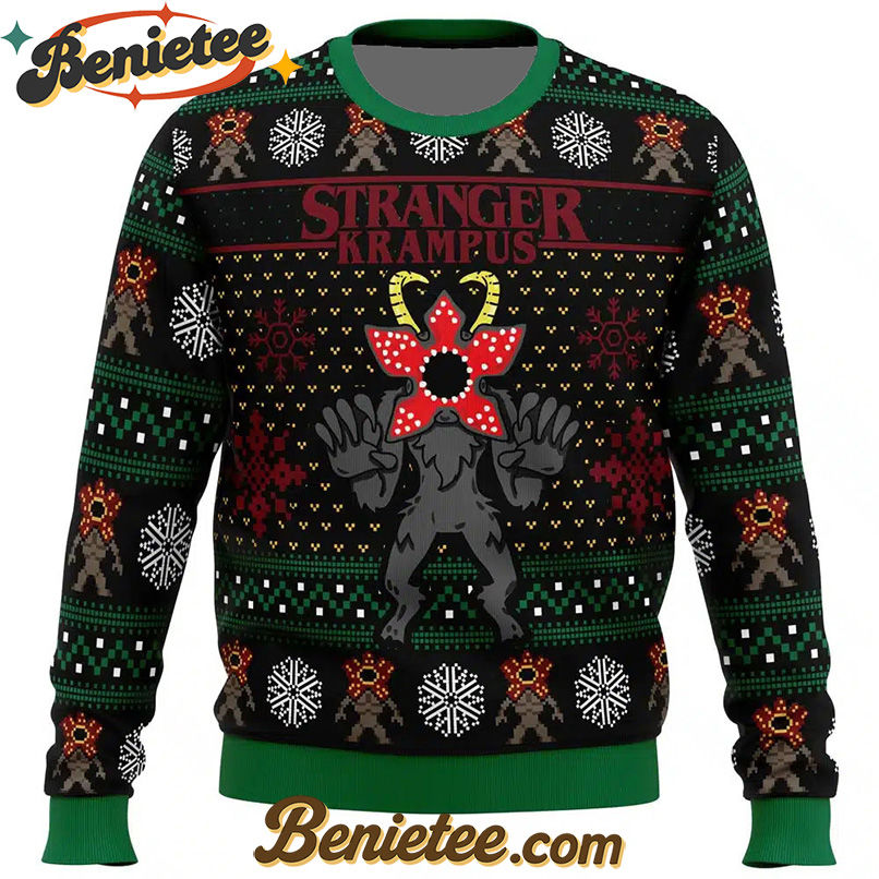 Celebrate the season with the Demogorgon Stranger Krampus Stranger Things Ugly Christmas Sweater — a playful, cozy ugly sweater made for joyful holiday moments.