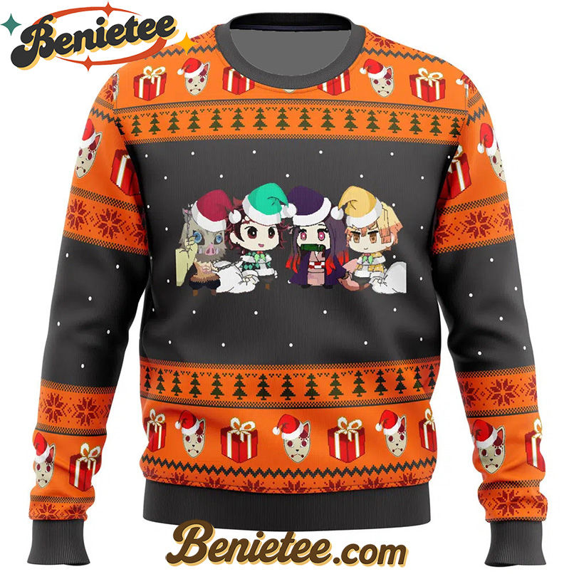 Get ready to jingle all the way to the Demon Slayer Corps headquarters this holiday season with our exclusive Chibi Ugly Christmas Sweater! This festive and fun sweater features your favorite Demon Slayer characters rendered in adorable chibi style, perfect for any anime fan looking to add a touch of otaku flair to their winter wardrobe. Crafted for comfort and designed to spread cheer, it’s the ideal attire for ugly Christmas sweater parties, holiday gatherings, or simply cozying up to watch your favorite episodes. Don’t miss out on this unique blend of holiday spirit and anime passion; grab your Demon Slayer Chibi Ugly Christmas Sweater today and make this Christmas unforgettable!