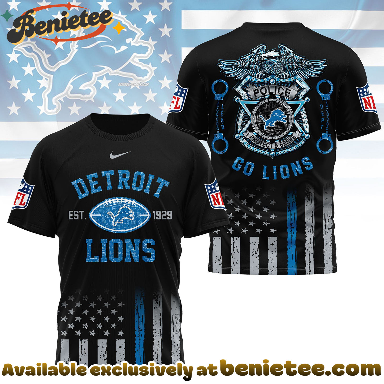 Show Your Support for the Detroit Lions and Our Heroes with this Premium NFL Law Enforcement Tribute 3D Shirt!