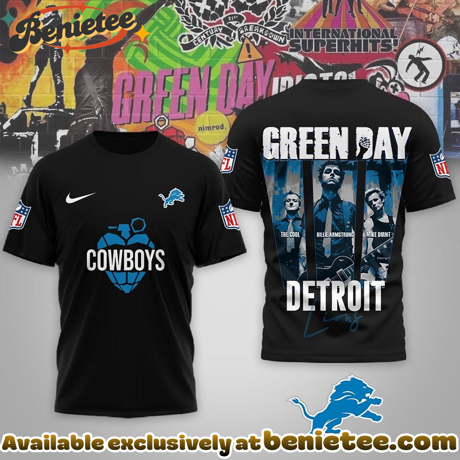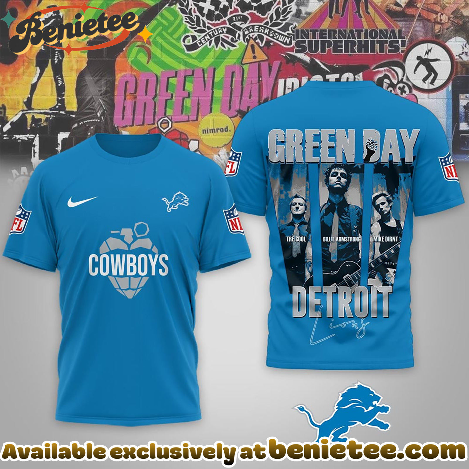 Crafted for comfort and durability, this premium apparel is made from high-quality materials designed to last through every touchdown and every power chord. Whether you’re heading to the stadium, a concert, or just hanging out, this collection offers the perfect blend of sporty style and rock ‘n’ roll attitude. It makes an unforgettable gift for any devoted Lions fan or Green Day aficionado looking to commemorate this epic crossover.