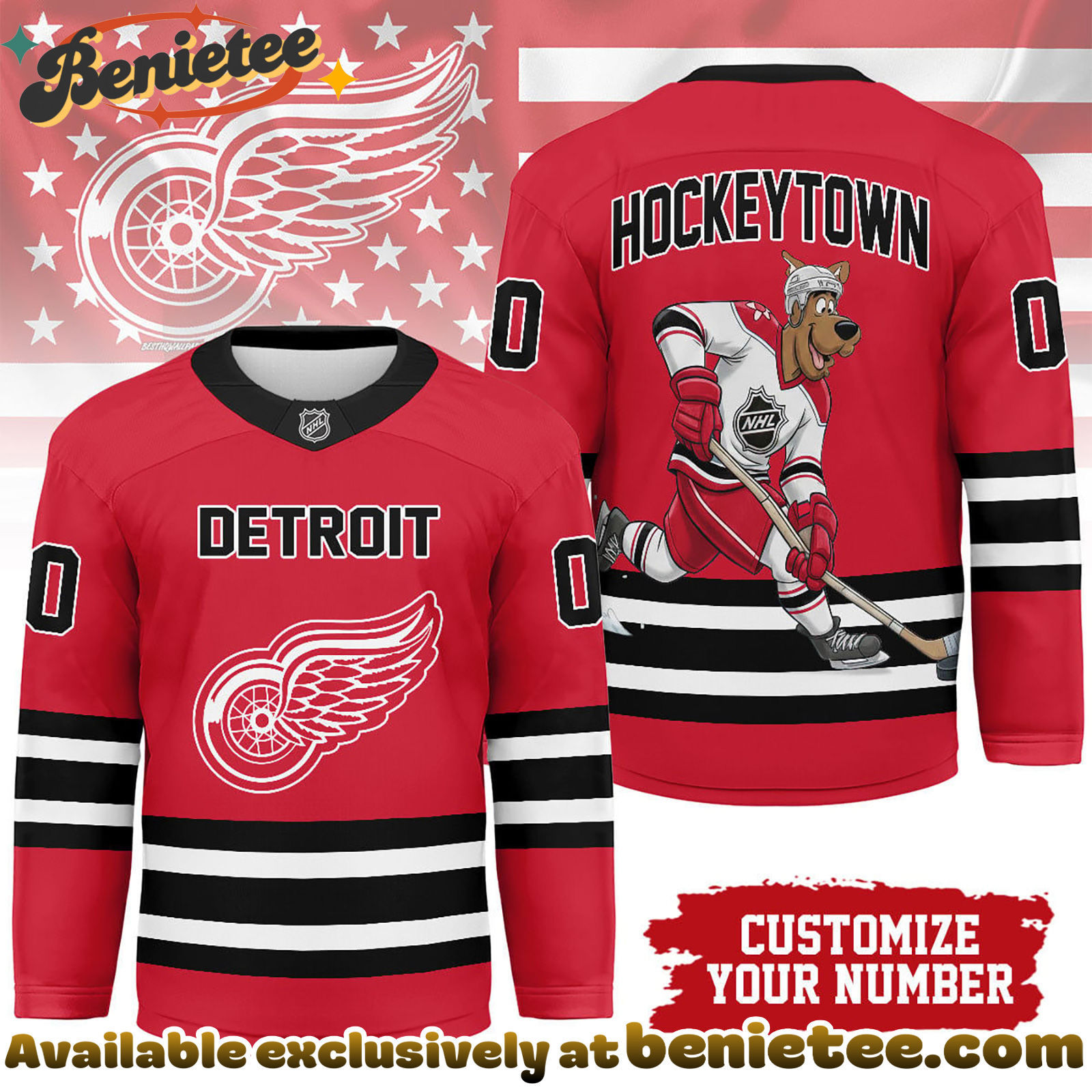 Show Your Detroit Red Wings Pride with a Scooby-Doo Twist and Personalize Your Hockey Jersey Today!