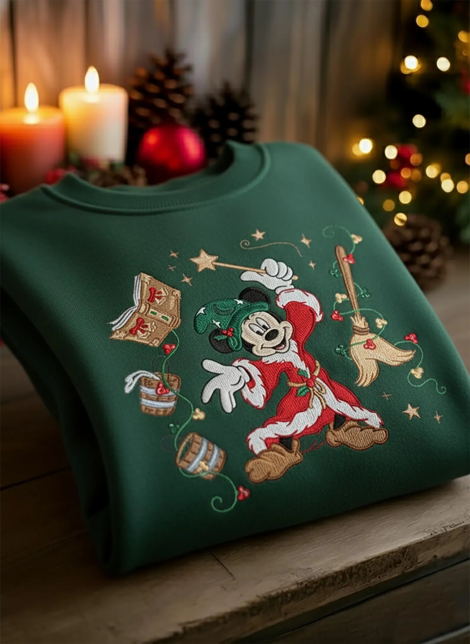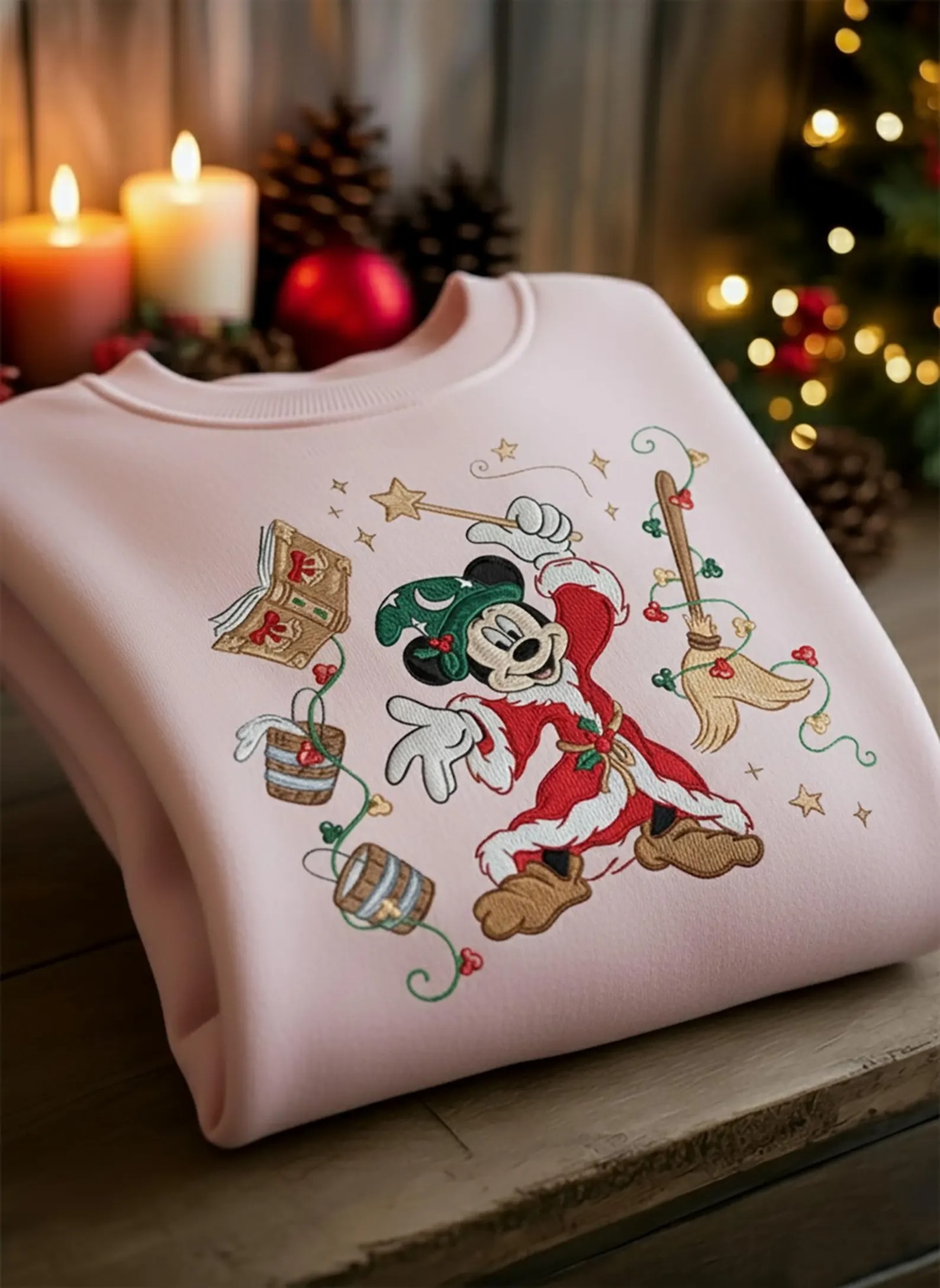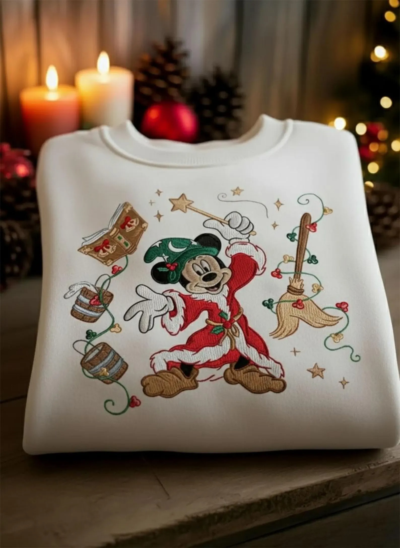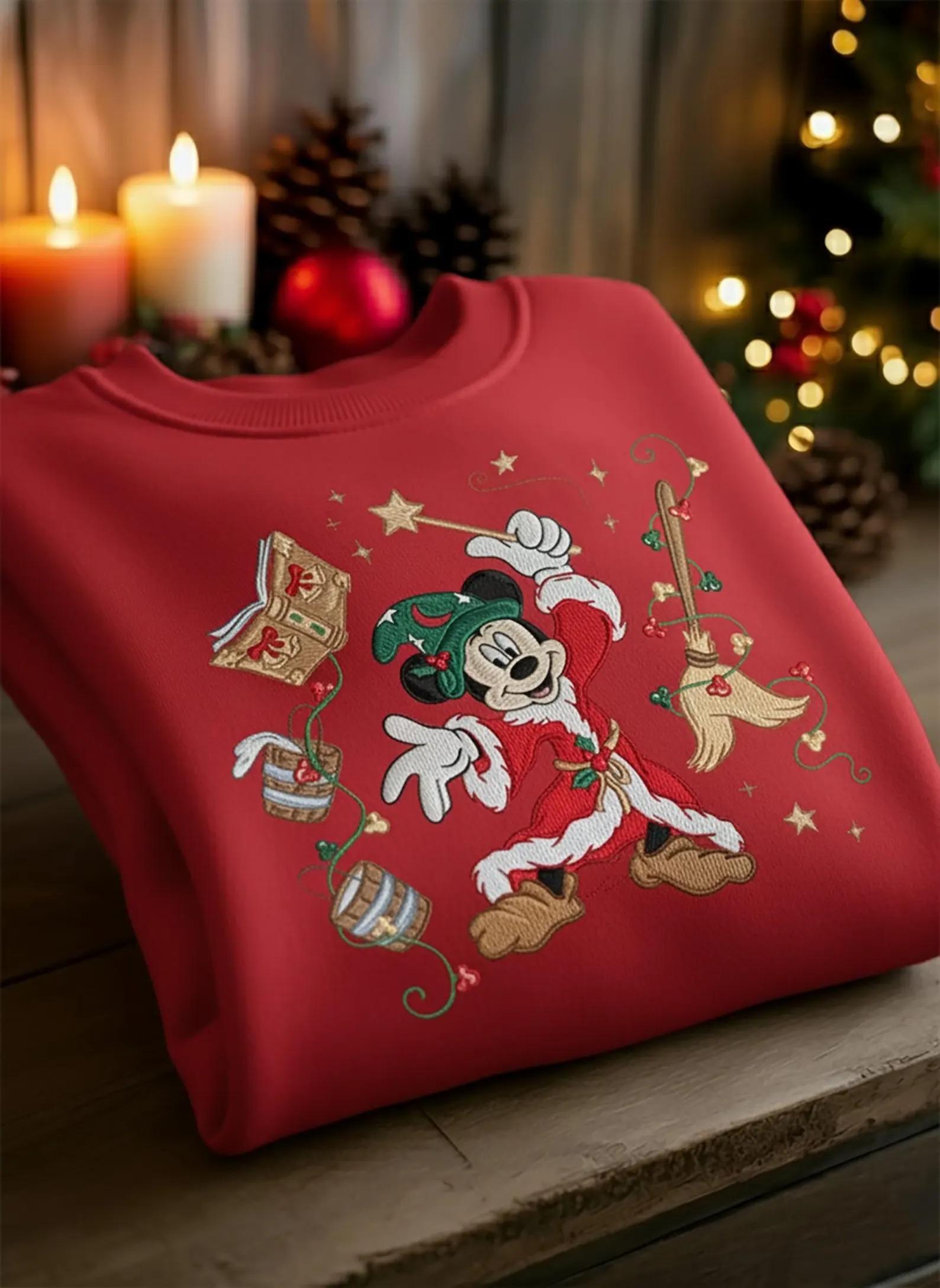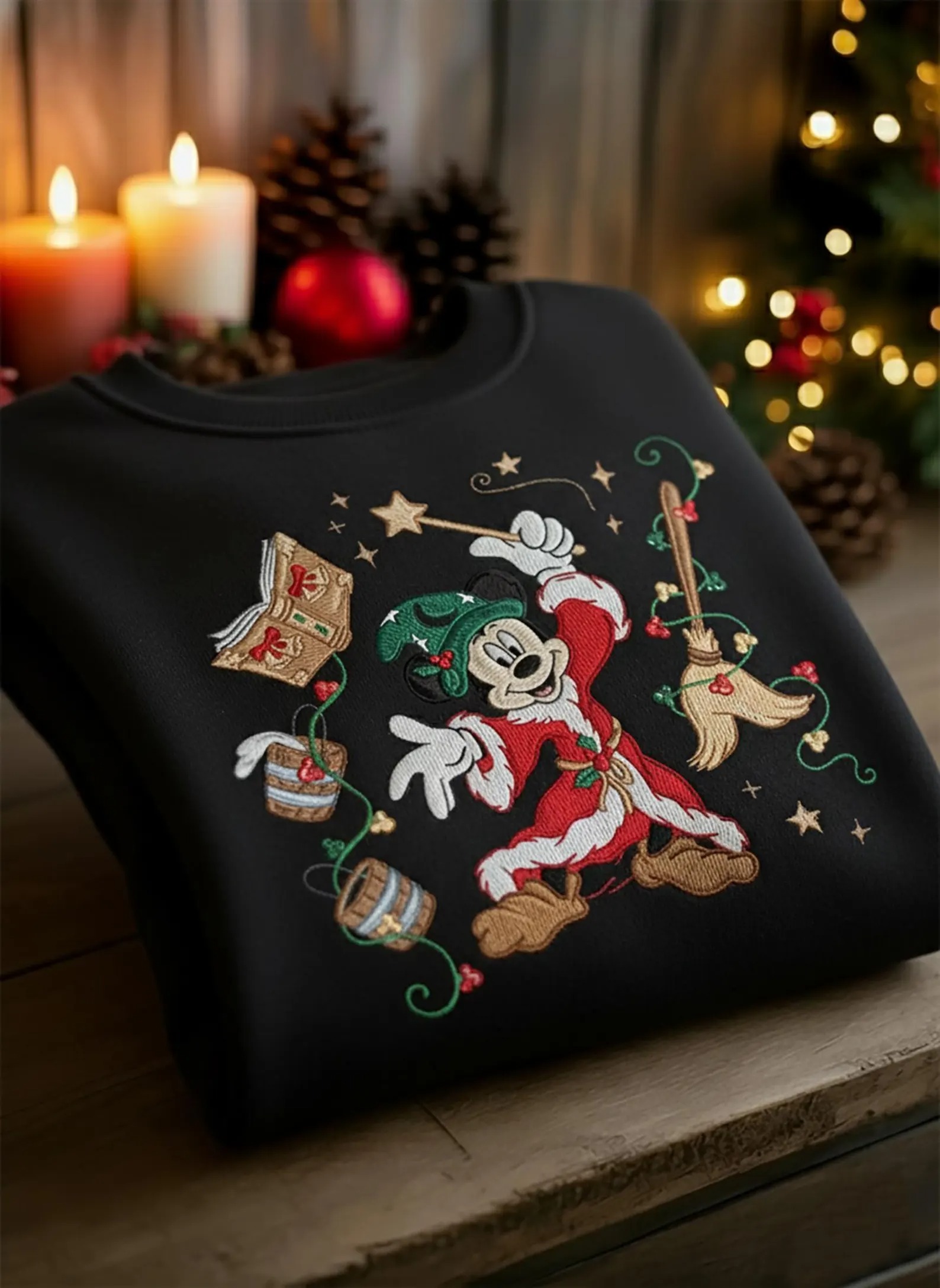 - This item: Disney Christmas Mickey Mouse Wizard Embroidered Sweatshirt, Mickey Fantasia Xmas Tee, Mickey Sorcerer T-Shirt, Disney Sweatshirt