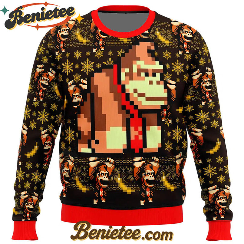 Unleash Your Inner Gamer with the Donkey Kong Sprite Ugly Christmas Sweater!
