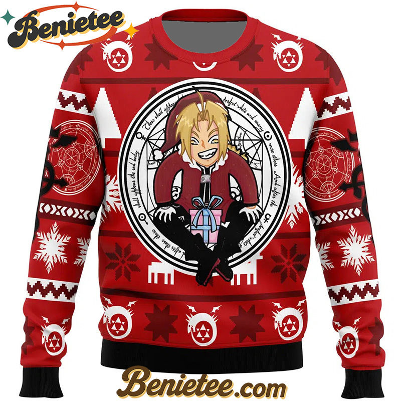 Embrace the Holiday Spirit with an Edward Elric Fullmetal Alchemist Ugly Christmas Sweater!