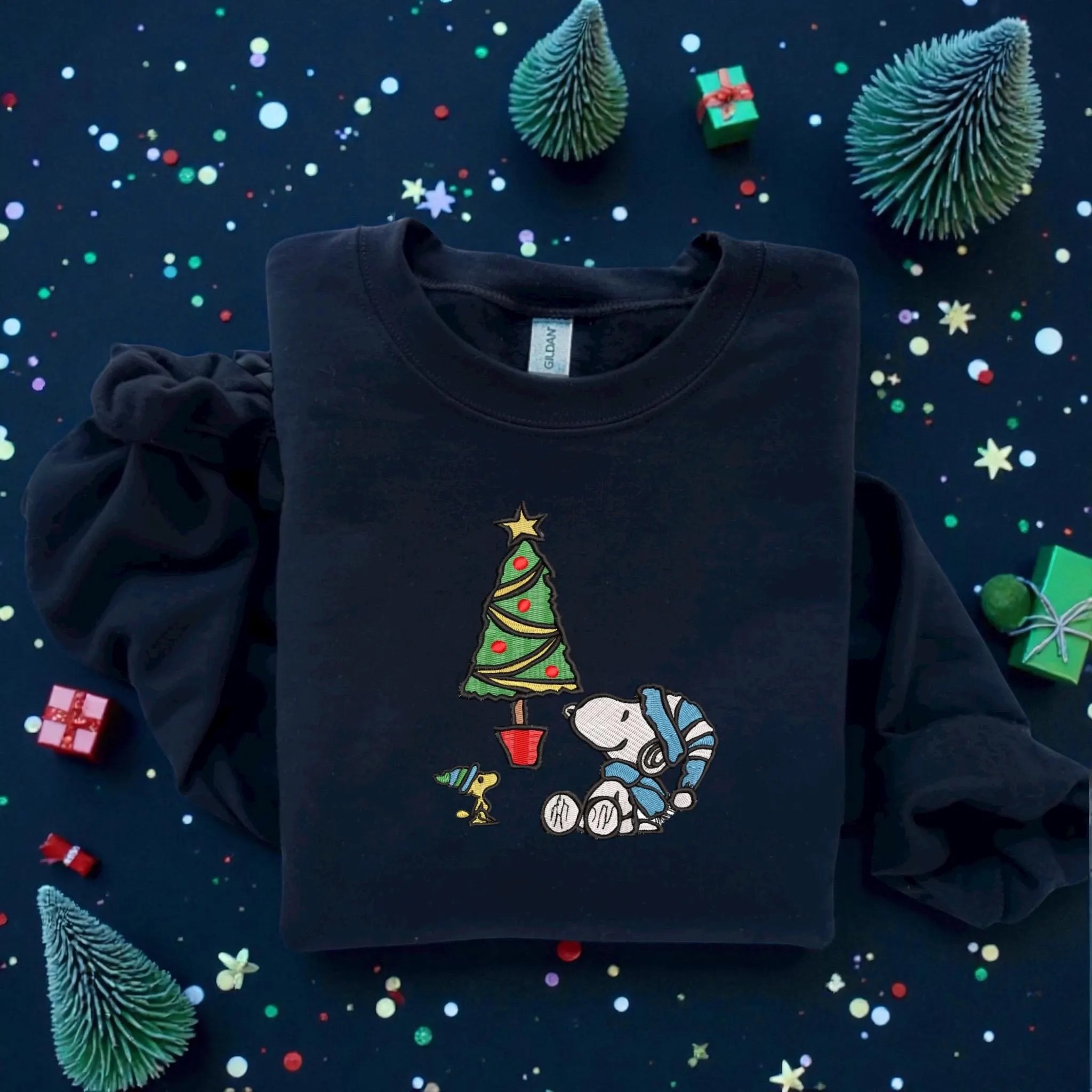 - This item: Embroidered Christmas Snoopy Sweatshirt, Christmas Tree Shirt, Embroidered Christmas Cartoon Dog T-Shirt