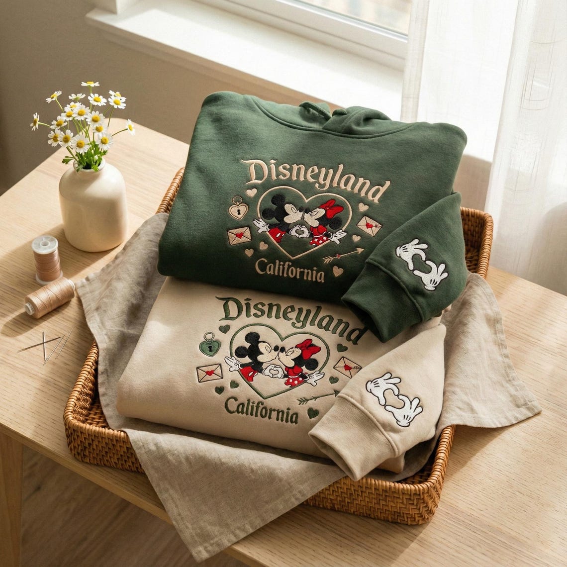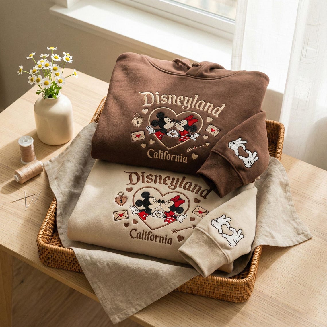 Embroidered Disney Couple Sweatshirt, Vintage Est 1955 Sweatshirt, Mickey Mouse Couple Cartoon Sweatshirt, Valentine Day Gift