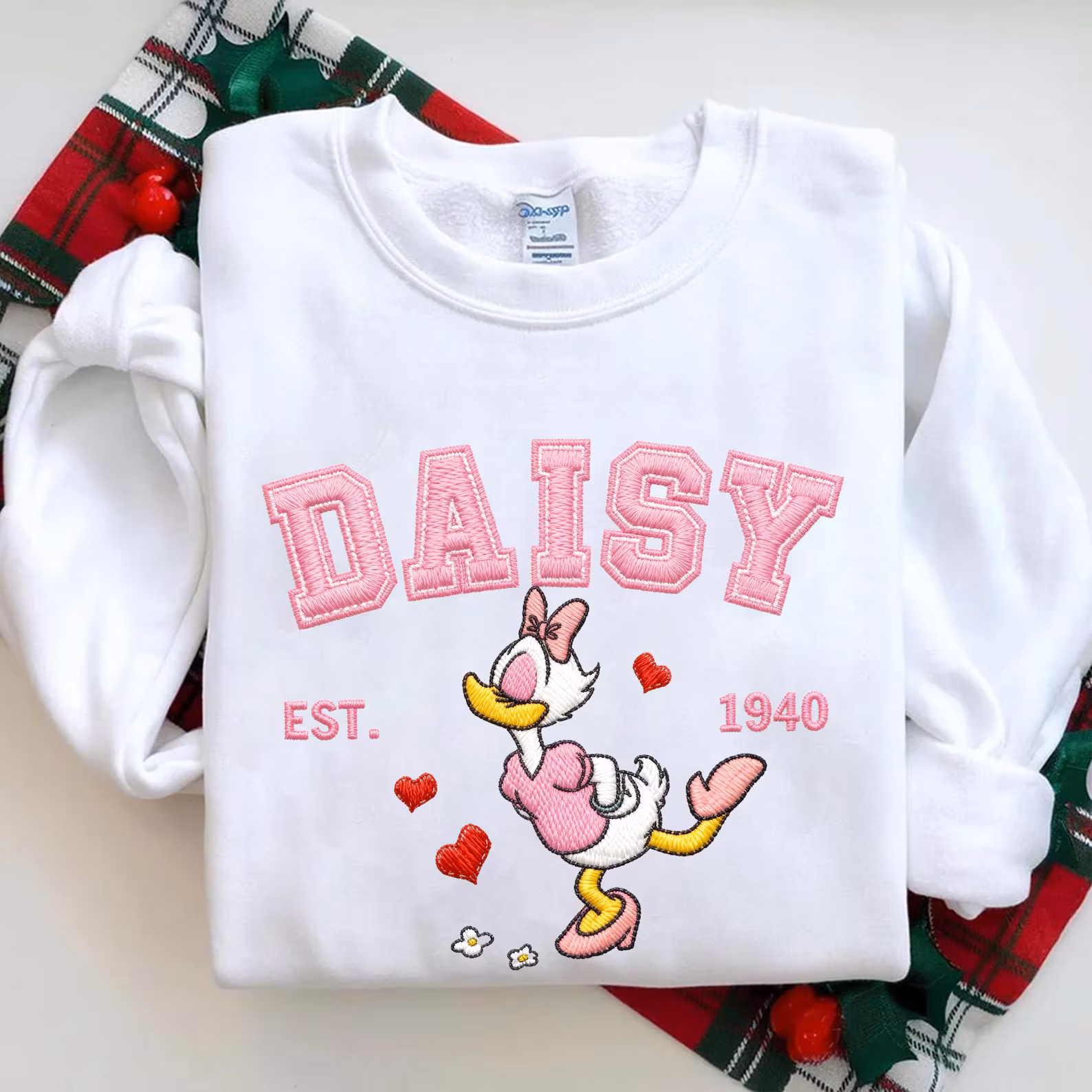 Embroidered Donald And Daisy Duck Couple Sweatshirt