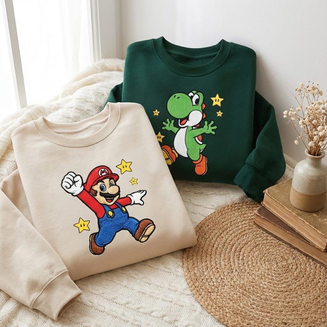 - This item: Embroidered Mario Gamer Couple Cartoon Sweatshirt, Matching Holiday Trip Tee, Cute Dinosaur Sweater Gamer Shirt, Valentine Gift
