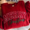 Embroidered Merry Christmas Sweatshirt: Festive Holiday T-Shirt Hoodie