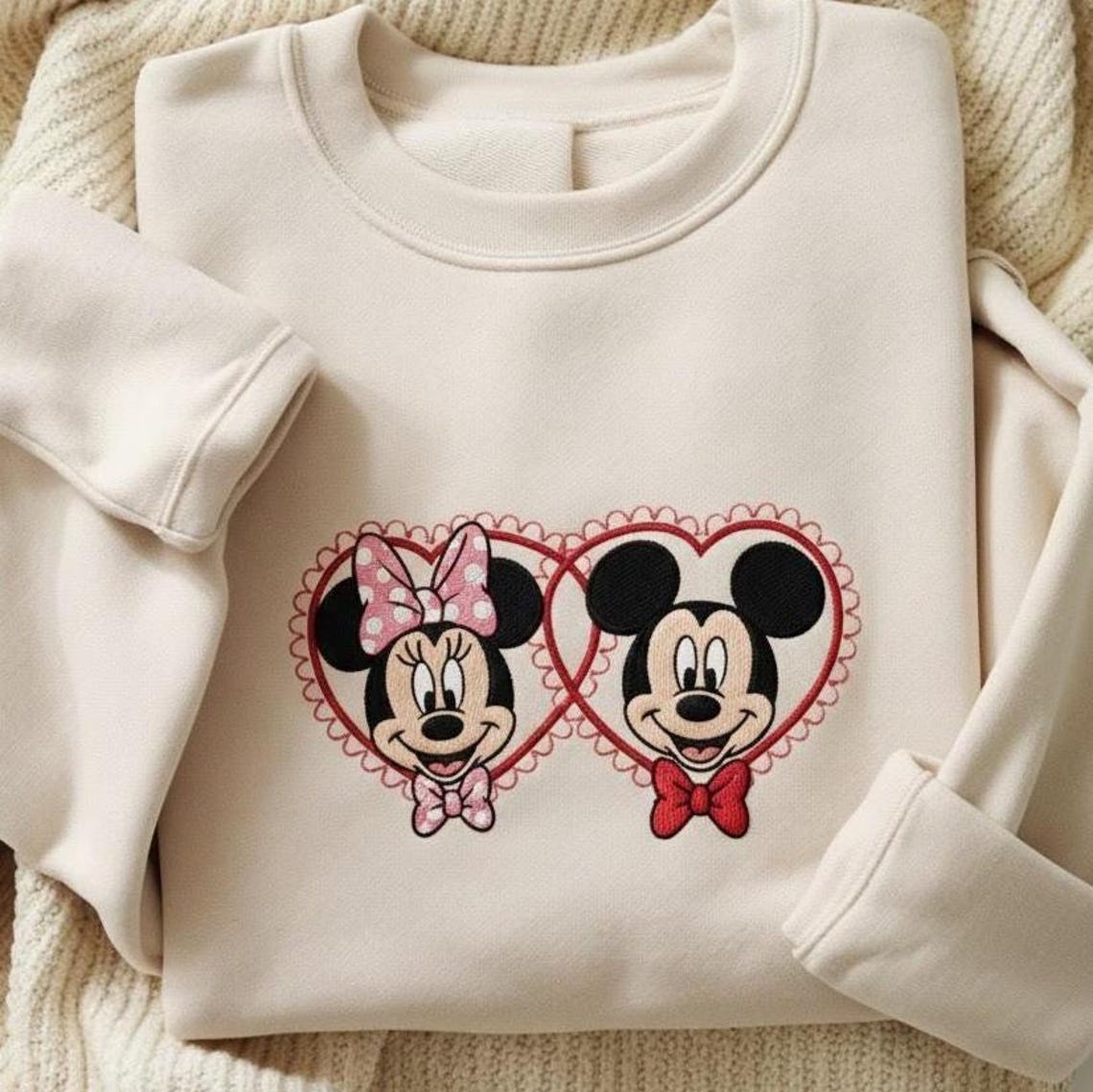 Embroidered Mickey and Minnie Sweatshirt, Mickey Minnie Couple Sweatshirt, Disney Couple Crewneck