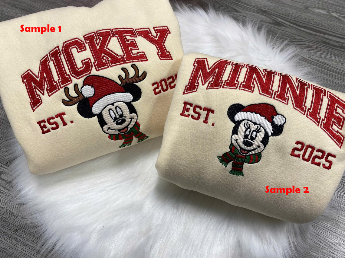 Embroidered Mickey & Minnie Christmas Sweatshirts, Disney Couple Shirts, Matching Family Holiday Sweater, Disneyland Trip Outfit