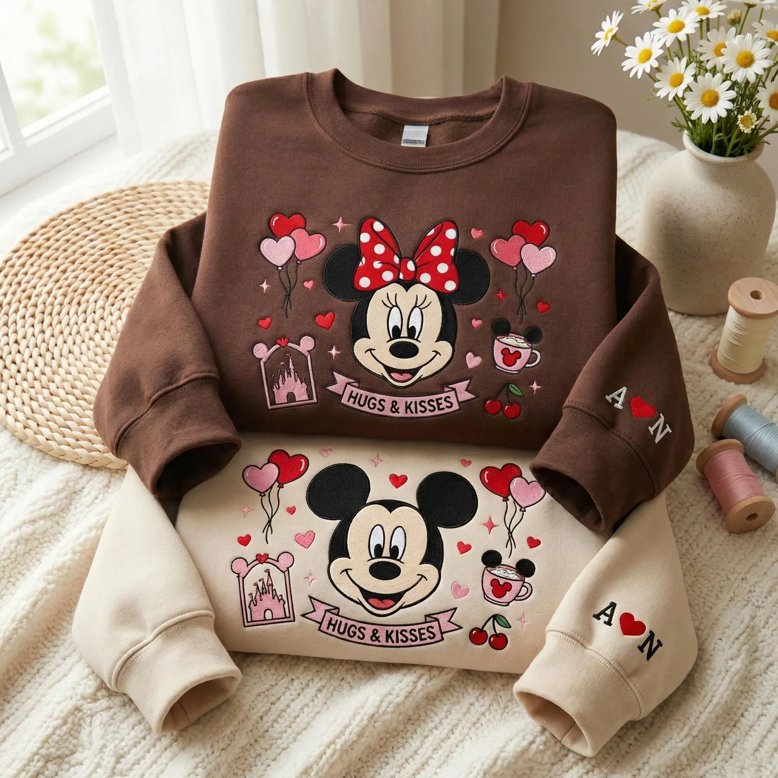 Embroidered Mickey Minnie Valentines Sweatshirt, Embroidered Disney Couple Holiday Sweater