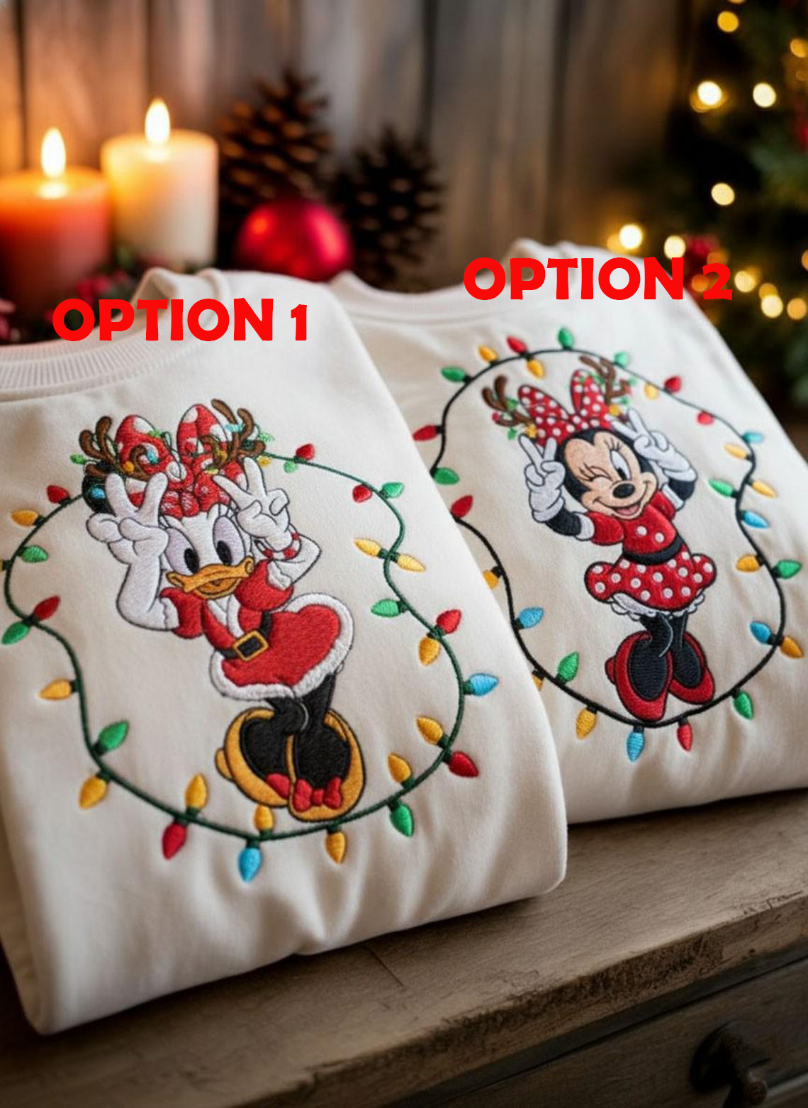 Embroidered Minnie Daisy Christmas Sweatshirt, Minnie Christmas Shirt, Disney Bestie Tee, Disney Holiday Matching Sweatshirt