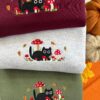 Embroidered Mushroom Cat Sweatshirt, Cute Autumn Embroidered Sweatshirt