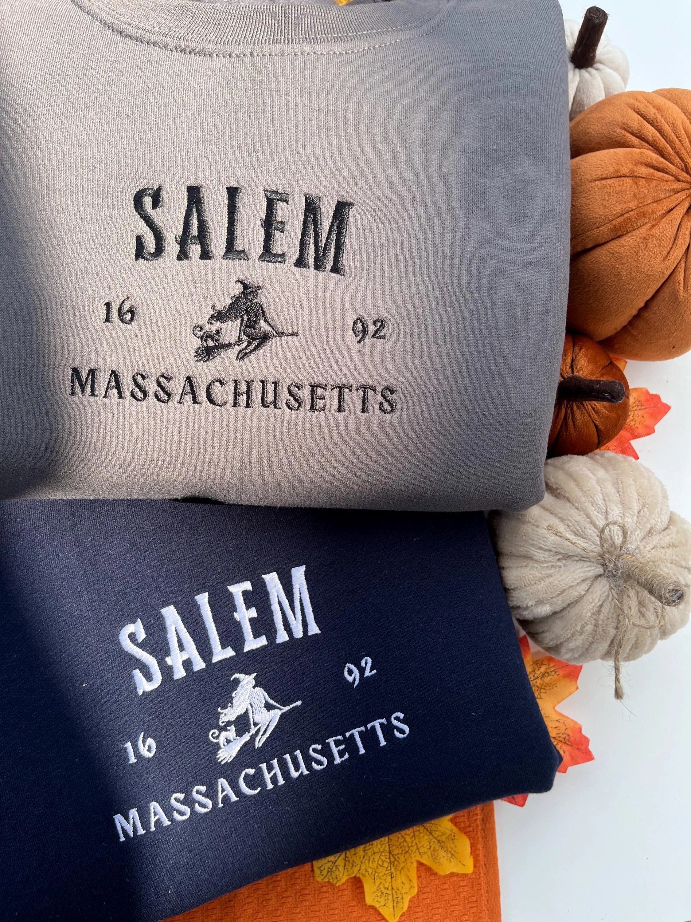 Embroidered Salem Witch Massachusetts Sweatshirt, Halloween Autumn Witchy Embroidered Sweatshirt