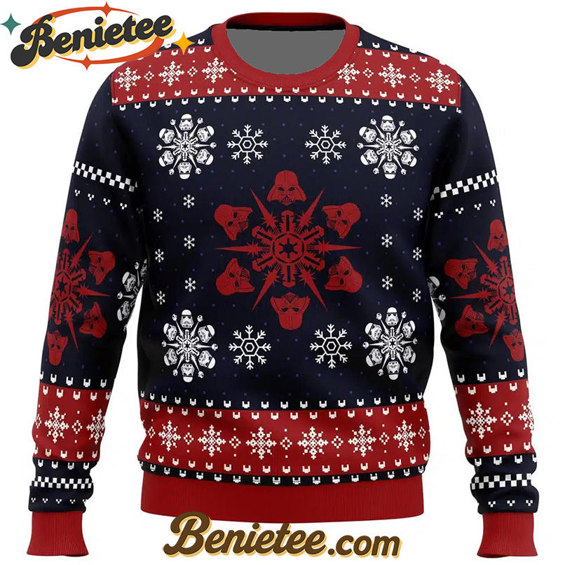 Embrace the Galactic Holiday Spirit with the Empire Snowflakes Star Wars Ugly Christmas Sweater!