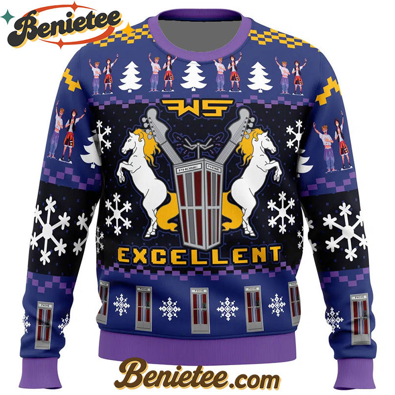 Are you ready to be most triumphant this Christmas? This Bill and Ted Ugly Christmas Sweater isn’t just apparel; it’s a conversation starter, a badge of honor for fans of excellent adventures and music. Featuring designs inspired by the beloved characters, it’s the perfect blend of festive cheer and nostalgic cool. Imagine the reactions at your next holiday gathering when you arrive sporting this unique piece. It’s more than just an ugly sweater; it’s a piece of pop culture history you can wear. Order your Excellent Bill and Ted Ugly Christmas Sweater and get ready to party on, dudes!