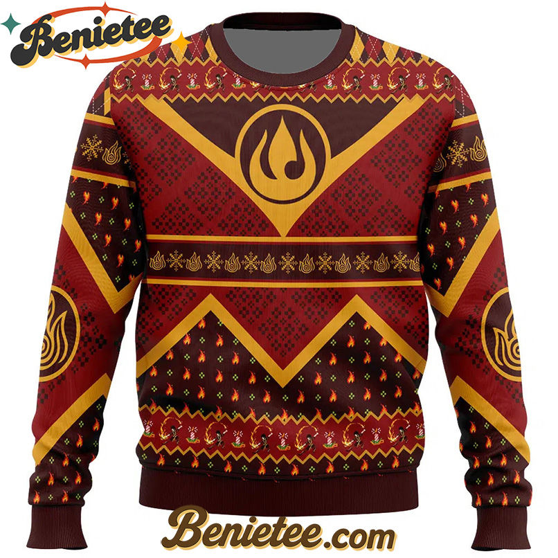 Celebrate the season with the Firebender Avatar the Last Airbender Ugly Christmas Sweater — a playful, cozy ugly sweater made for joyful holiday moments.