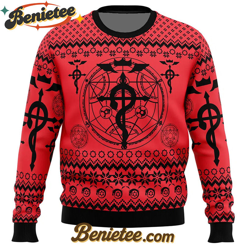 Why Choose Flamel’s Cross x Transmutation Circle Fullmetal Alchemist Ugly Christmas Sweater?
