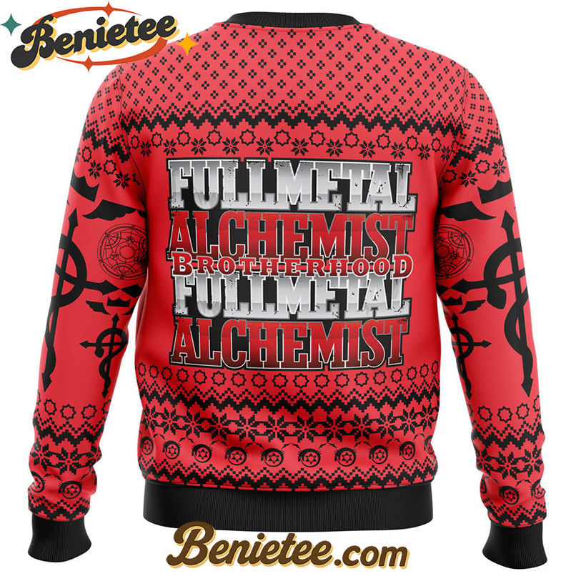 Unleash Your Inner Alchemist: Buy the Flamel's Cross x Transmutation Circle Fullmetal Alchemist Ugly Christmas Sweater Now!