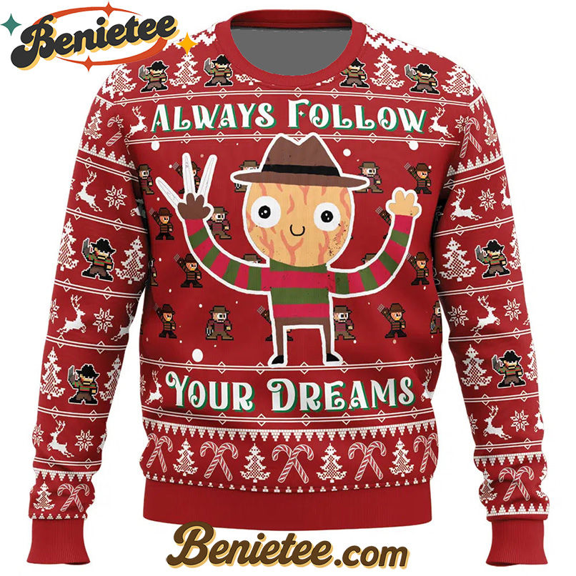 Follow Your Dreams Nightmare on Elm Street Ugly Christmas Sweater