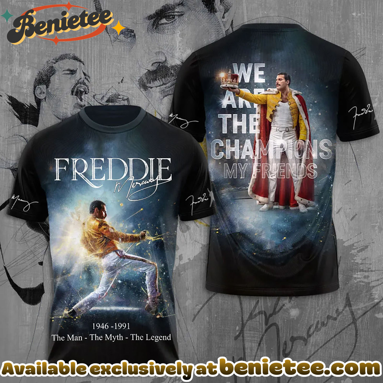 Commemorate the iconic 80th anniversary of Freddie Mercury, the unparalleled frontman of Queen, with our exclusive collection. This special edition apparel celebrates the enduring legacy and electrifying stage presence of one of music’s greatest performers. Immerse yourself in the spirit of rock ‘n’ roll and honor the man whose voice and charisma defined a generation. Perfect for dedicated fans and music enthusiasts, these pieces are designed to capture the essence of Freddie Mercury’s unparalleled artistry. Explore designs that pay homage to his flamboyant style and timeless hits. Don’t miss this chance to own a piece of music history and express your admiration for this legendary artist. Shop now and keep the spirit of Freddie Mercury alive!