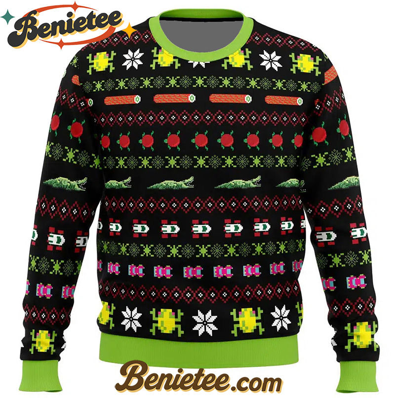 Looking for the ultimate gift for the gamer or retro enthusiast in your life? The Frogs, Logs & Automobiles Frogger Ugly Christmas Sweater is an unforgettable present that combines beloved childhood memories with seasonal cheer. Its vibrant design and comfortable fit make it ideal for holiday parties, family gatherings, or even just lounging at home. The intricate details capture the essence of the Frogger experience, bringing a smile to anyone who remembers those challenging levels. Make this holiday season extra special and memorable with a sweater that celebrates a gaming icon. It’s more than just a sweater; it’s a statement of fun, nostalgia, and holiday spirit.