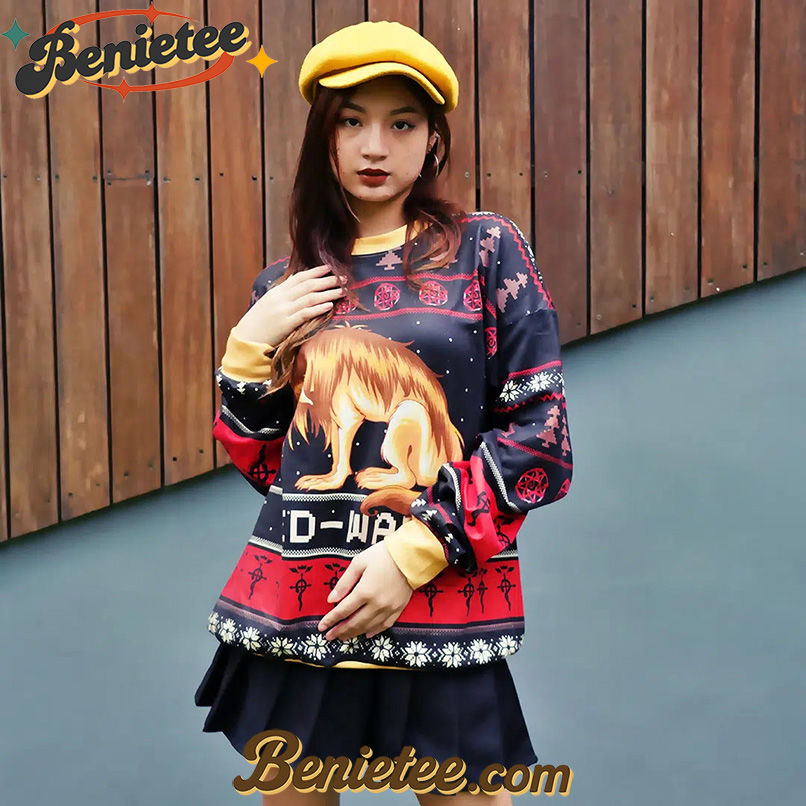Step into the holiday season with a unique and unforgettable statement piece: the Fullmetal Alchemist Chimera Nina Tucker Ugly Christmas Sweater. This design boldly merges the beloved anime world of Fullmetal Alchemist with the festive spirit of an ugly Christmas sweater. Perfect for anime fans, especially those who appreciate the darker, more poignant moments of the series, this sweater is sure to spark conversations and showcase your passion. Crafted for comfort and designed to stand out, it’s an ideal choice for holiday parties, casual gatherings, or simply lounging at home while rewatching your favorite episodes. Don’t miss out on this exclusive blend of anime fandom and holiday cheer – grab your Fullmetal Alchemist Chimera Nina Tucker Ugly Christmas Sweater now and make this Christmas truly alchemical!