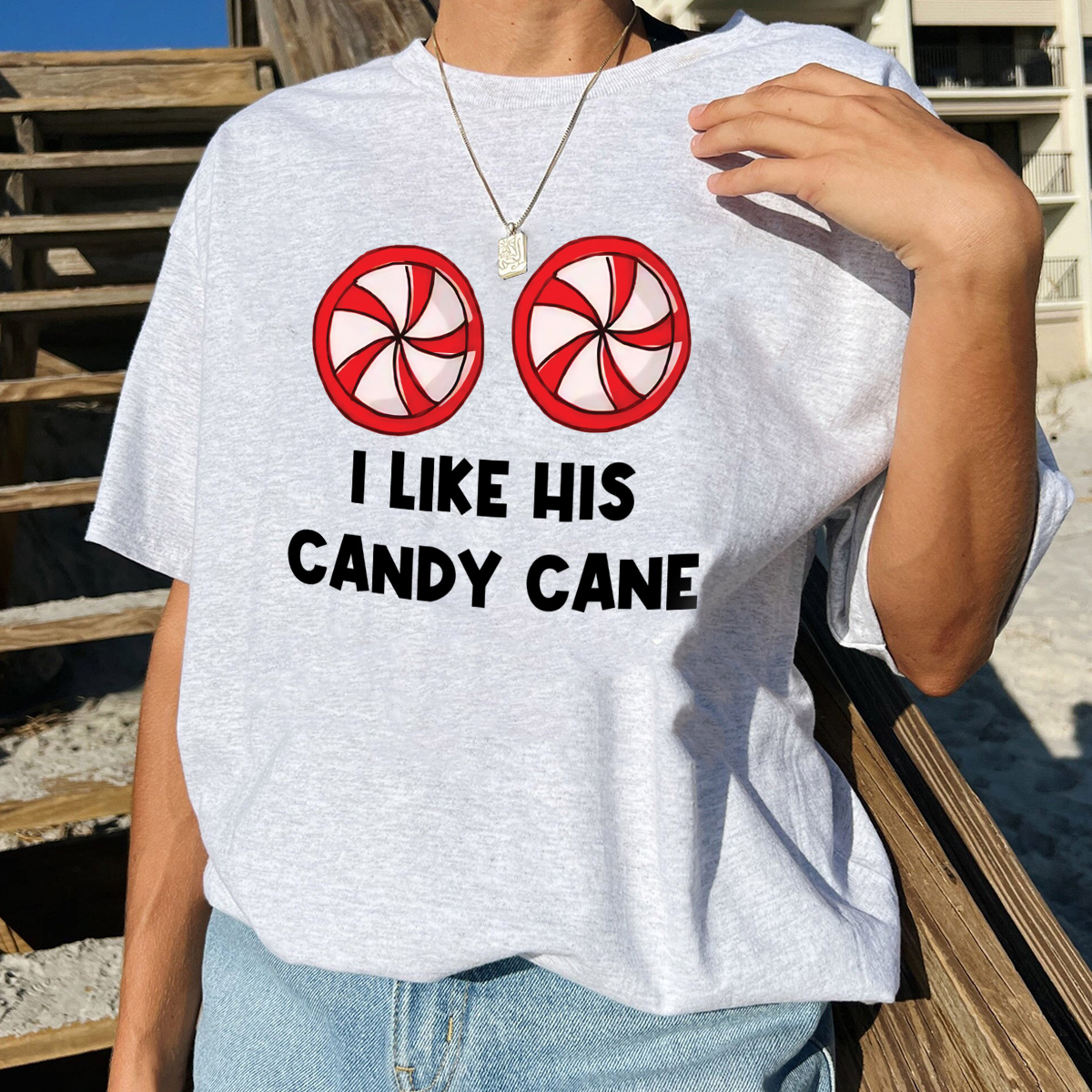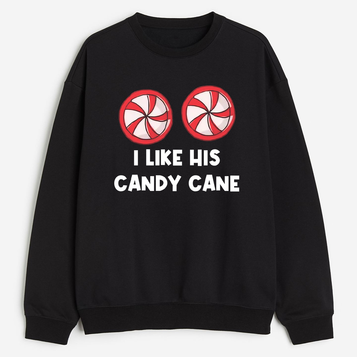 Funny Christmas Couples Sweatshirt, I Like His Candy Cane Sweater, Matching Xmas Husband Wife Pajama Gift, Cozy Casual Outfit