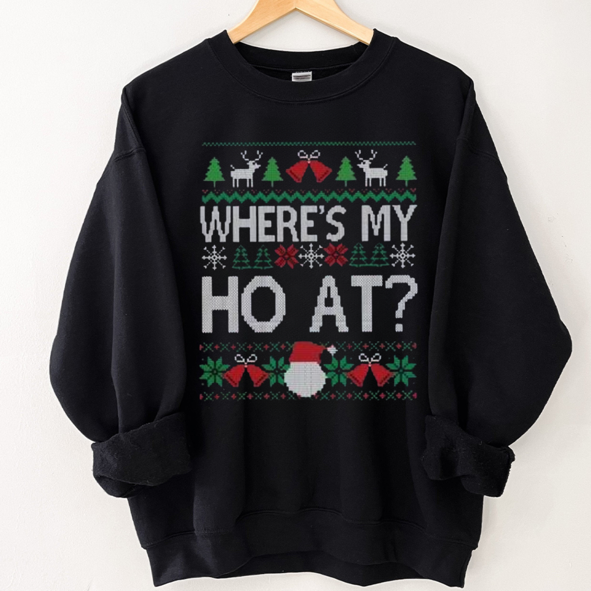 Funny Couples Christmas Sweatshirt, Where’s My Ho At Ugly Christmas Sweaters , Xmas Matching Shirt , Matching Husband Wife Christmas Party