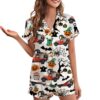- Short-sleeve, button-front design with a turn-down collar, chest pocket, and contrast piping—classic and stylish for sleepwear, loungewear, or hosting guests.