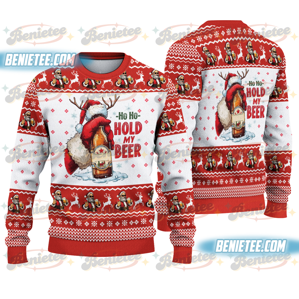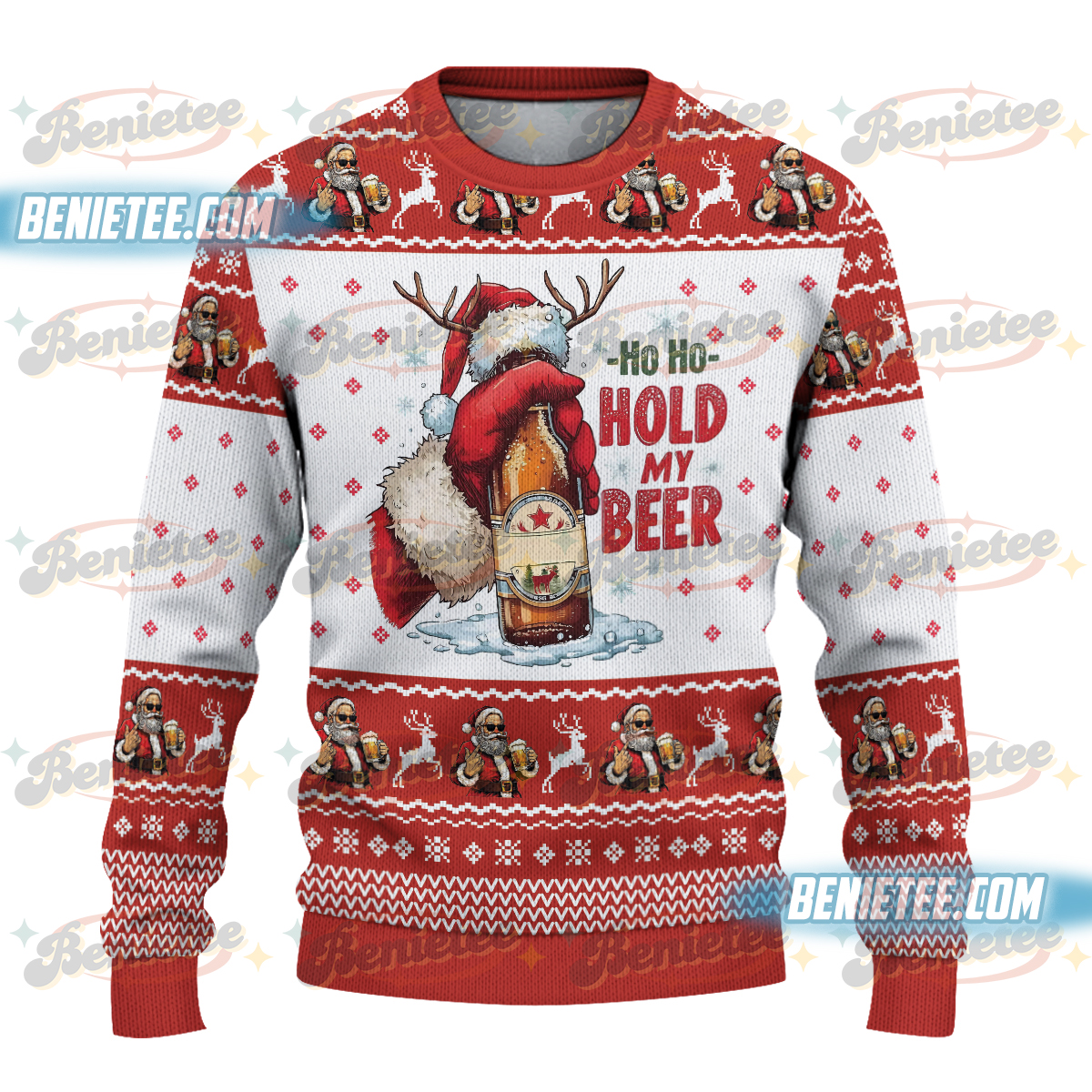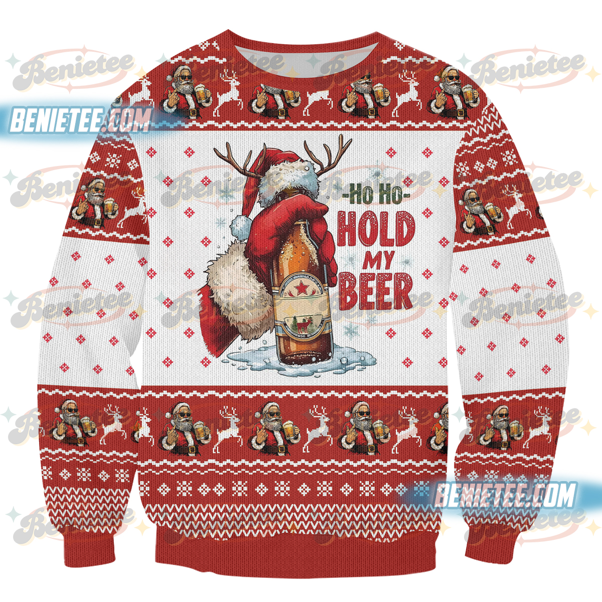Funny Santa Beer Christmas Ugly Sweater, All I Want For Christmas Beer Lover Holiday Sweater, Drinking Party Xmas Sweater Gift