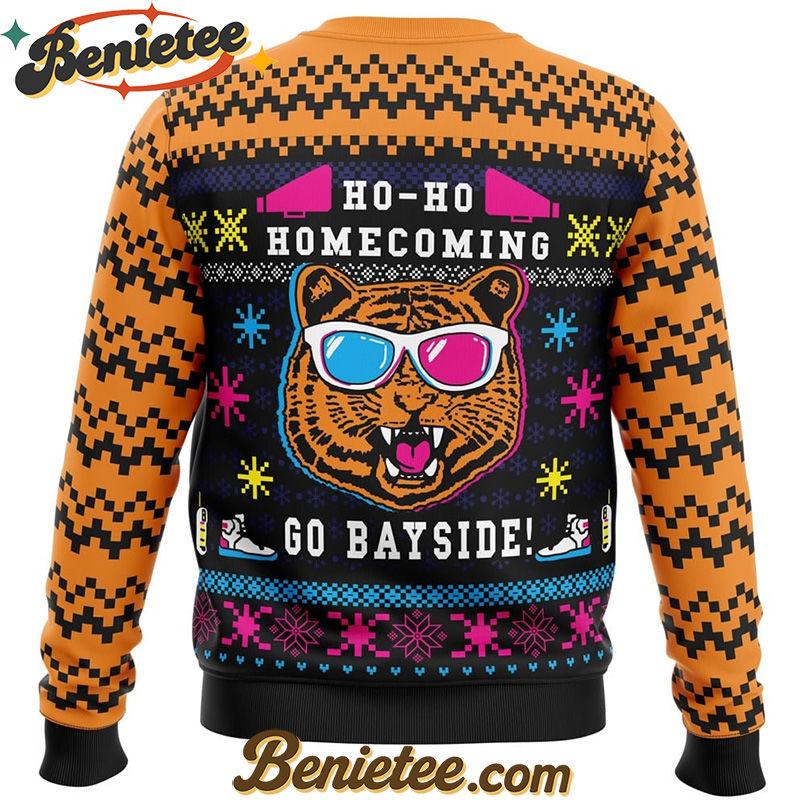 Embrace the ultimate nostalgic holiday cheer with the “Go Bayside Saved by the Bell Ugly Christmas Sweater.” This officially licensed apparel is a perfect throwback for any fan of the iconic 90s sitcom. Featuring classic “Bayside High” motifs and a delightfully tacky design, it’s guaranteed to be a conversation starter at any festive gathering. Whether you’re decking the halls or attending an ugly sweater party, this sweater lets you showcase your love for Zack, Kelly, Slater, and the whole gang in true holiday spirit. Don’t miss out on this unique piece of pop culture memorabilia – grab yours today and spread some Bayside cheer this Christmas!