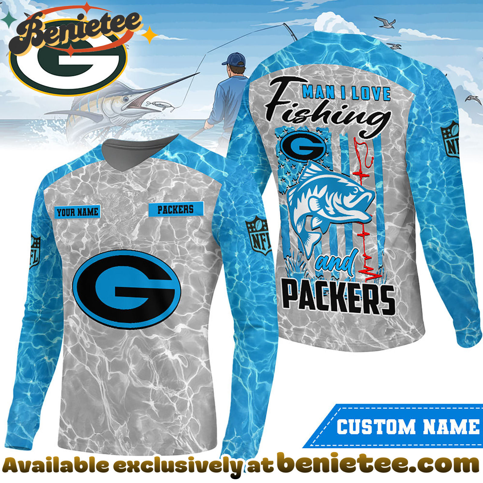 Show Your Green Bay Packers Love with This Premium NFL Fishing Long Sleeve!