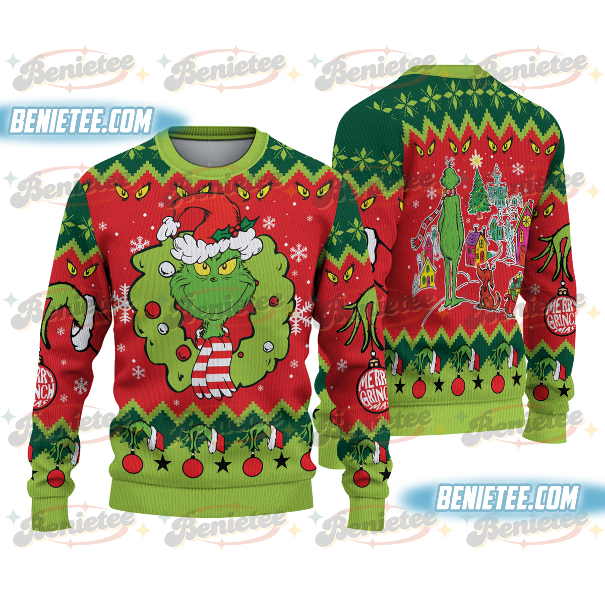 Grinch Ugly Christmas Sweater Shirt, Funny Holiday Graphic Tee