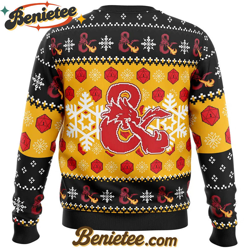 Unleash your inner adventurer this holiday season with the ultimate Dungeons & Dragons-themed ugly Christmas sweater! Perfect for any tabletop RPG enthusiast, this festive knitwear boldly declares your commitment to the game, even when the odds are stacked against you. Featuring a unique design inspired by the iconic D&D dice and a humorous twist on holiday cheer, this sweater is sure to be a conversation starter at any party. Whether you’re a Dungeon Master or a brave player, show off your passion for critical fails and epic wins with this cozy and eye-catching garment. Get yours today and make this Christmas a legendary one!
