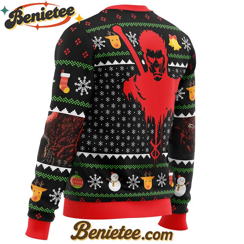 Embrace the Darkly Festive Spirit with the Guts Santa Claus Berserk Ugly Christmas Sweater!
