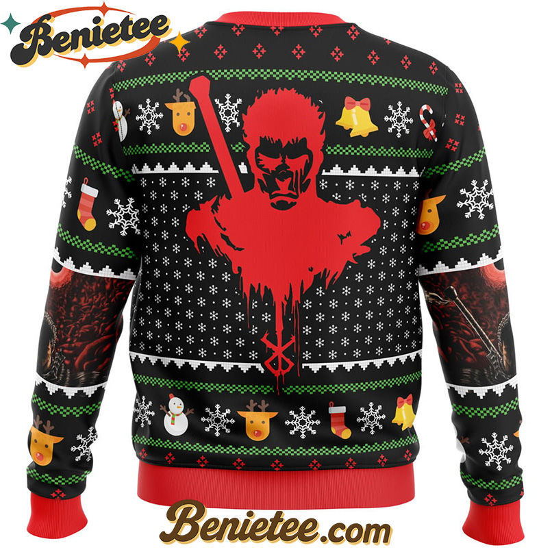 Unleash Your Inner Warrior with the Ultimate Guts Santa Claus Berserk Ugly Christmas Sweater Purchase!