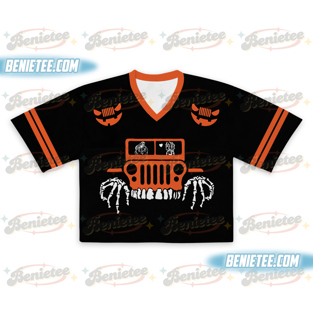 Halloween Offroad Jersey, Horror Skeleton Peace Hand Crop top Football Jersey