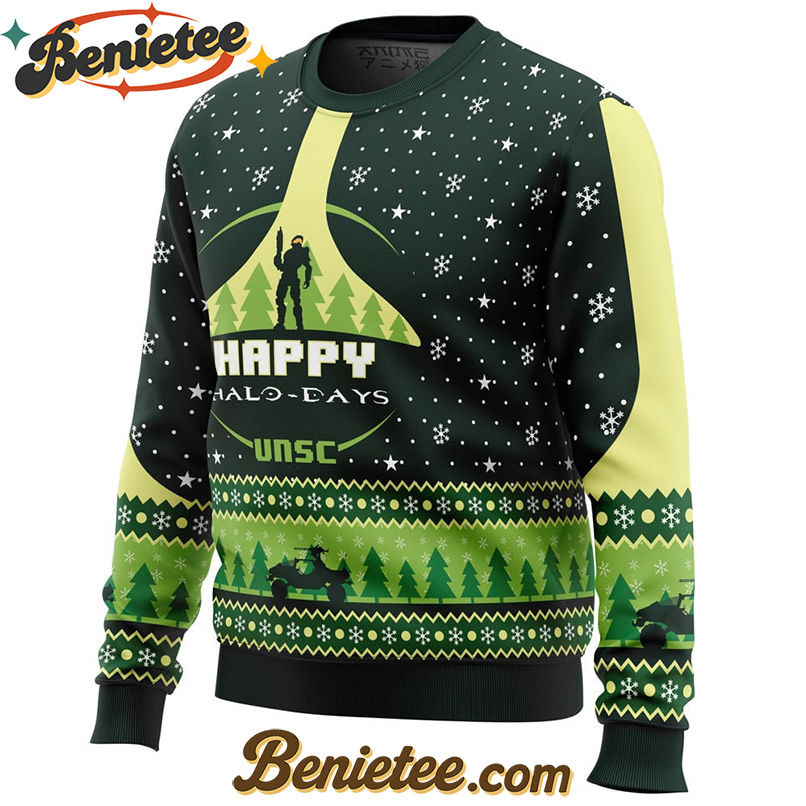 Embrace the holiday spirit with a touch of gaming nostalgia and undeniable festive cheer! Our Happy Halo-days Halo Ugly Christmas Sweater is the ultimate way to showcase your love for the iconic Halo franchise while rocking the most wonderfully tacky holiday attire. Perfect for ugly sweater parties, casual holiday gatherings, or even just lounging around the house watching your favorite festive movies, this sweater is designed to bring smiles and spark conversations. Crafted with comfort and durability in mind, it features a unique design that blends classic Christmas elements with beloved Halo imagery, making it a standout piece for any fan. Don’t miss out on adding this must-have item to your holiday wardrobe and making this season truly unforgettable. Order your Happy Halo-days sweater now and spread some intergalactic holiday cheer!
