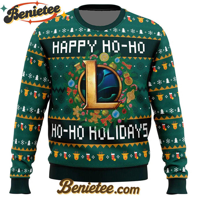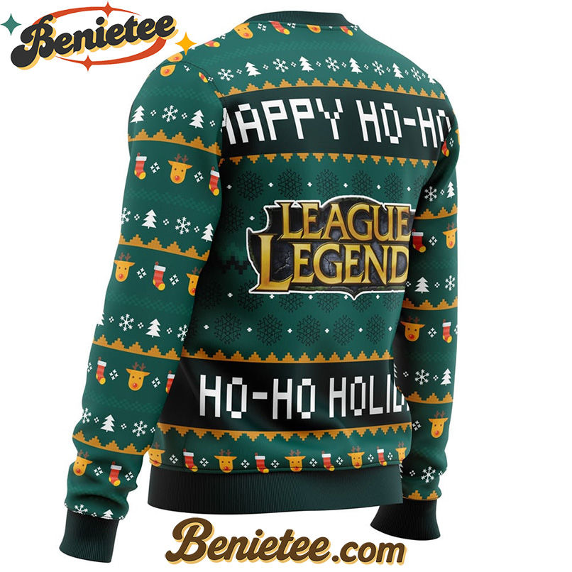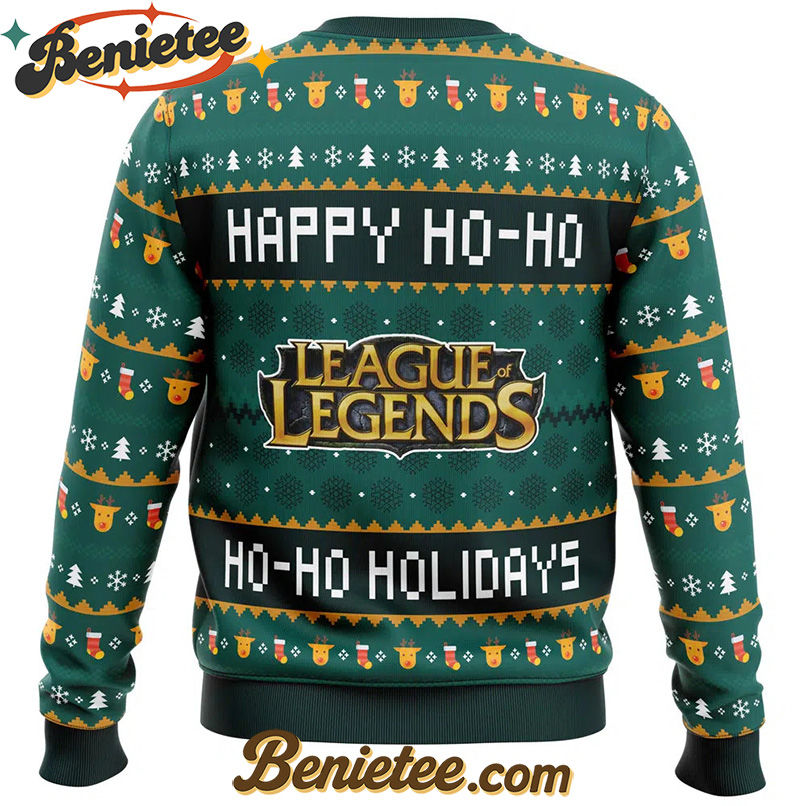 Embrace the Festive Spirit with the Happy Ho-Ho-Ho Holidays League of Legends Ugly Christmas Sweater!
