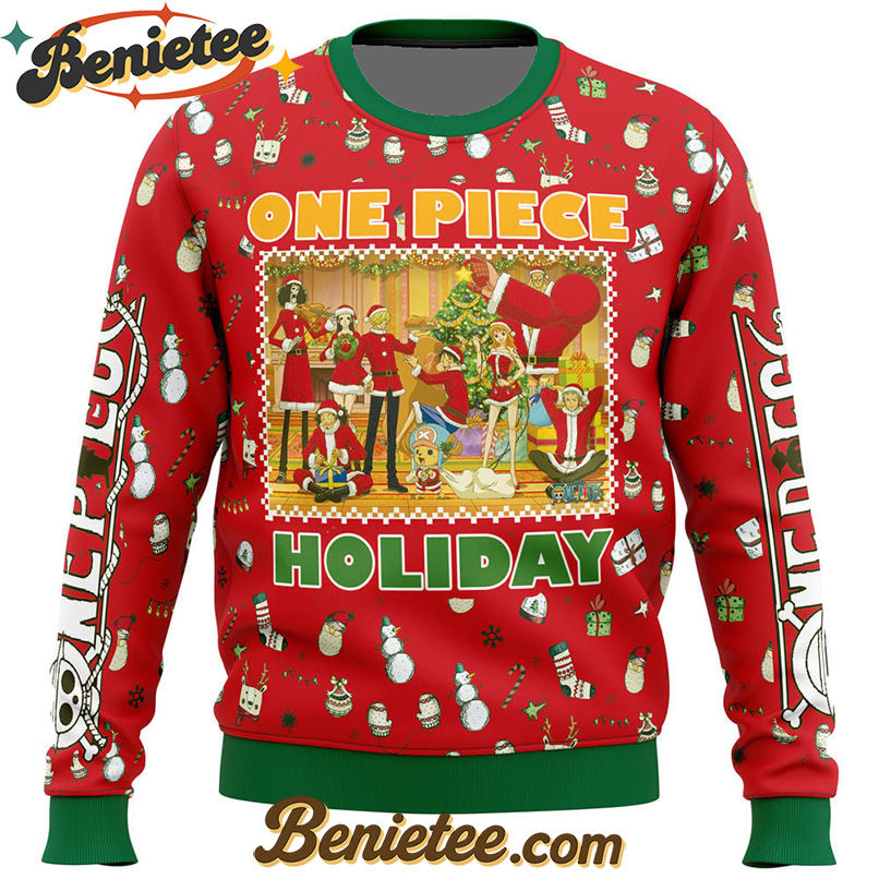 Searching for that perfect blend of anime fandom and holiday cheer? Look no further! The “Happy Holidays One Piece Ugly Christmas Sweater” offers a fun and quirky way to celebrate. Whether you’re a longtime fan of Monkey D. Luffy and the Straw Hat Pirates or just appreciate a good ugly sweater, this design is sure to be a hit. It’s more than just a sweater; it’s a statement piece that brings together the adventurous world of One Piece with the joyful spirit of Christmas. Make your holiday celebrations stand out from the crowd and add this must-have item to your collection. Click here to secure your “Happy Holidays One Piece Ugly Christmas Sweater” and make this festive season legendary!